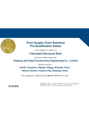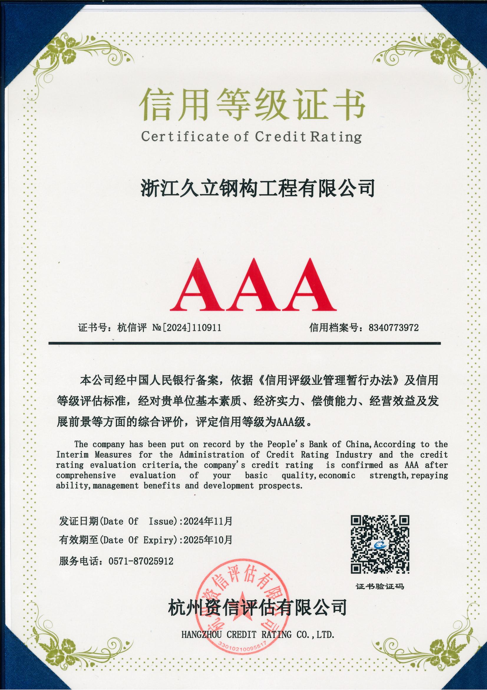 Zhejiang Jiuli Steel Structure Engineering Co., Ltd., founded in February 2001, is based in Huzhou City, the core area of the booming economy of the Yangtze River Delta in China. As a wholly-owned subsidiary of Jiuli Group, our company has not only been awarded honors such as Contract-abiding and Credit-worthy Unit, High-tech Enterprise, and AAA Credit Enterprise in Huzhou City but also holds important memberships in the China Steel Structure Association and the Steel Structure Branch of the Zhejiang Construction Industry Association, demonstrating our authoritative position and outstanding influence in the industry.