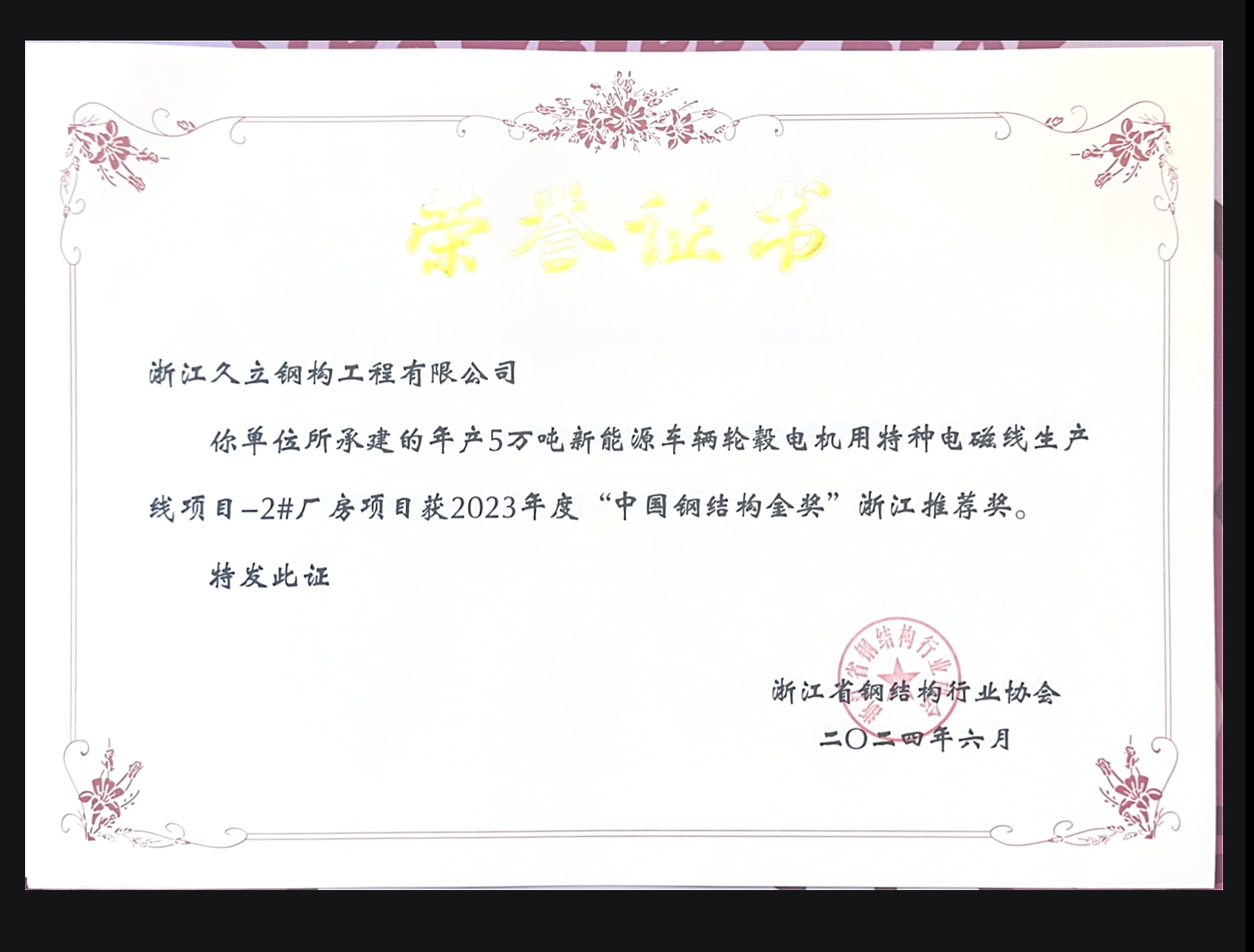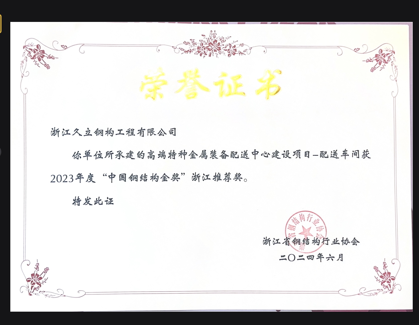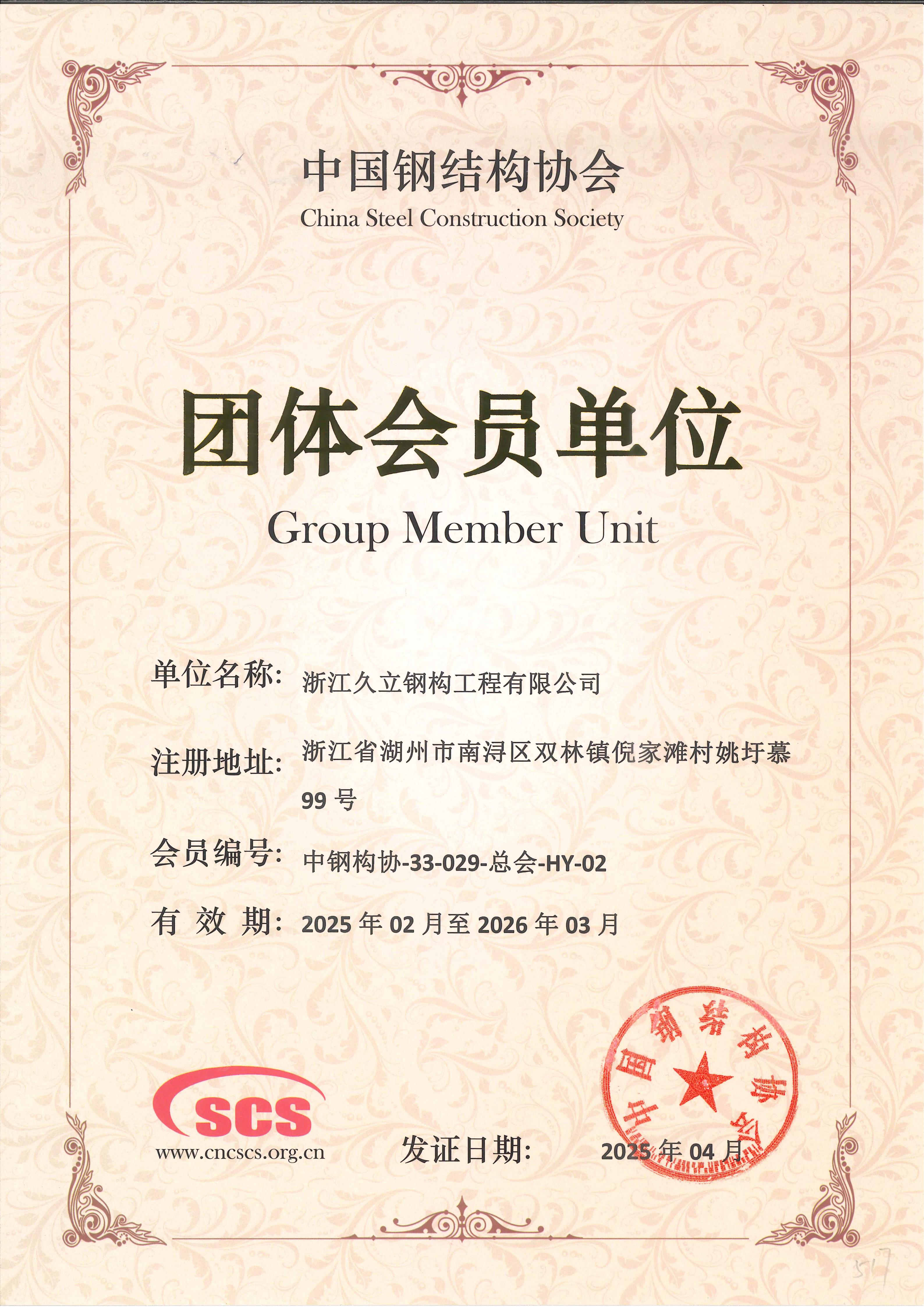 浙江久立鋼構工程有限公司,自2001年2月立足于中國經(jīng)濟騰飛的核心區(qū)域--長三角的湖州市,作為久立集團的全資子公司,本公司不僅榮獲湖州市重合同守信用單位、高新技術企業(yè)、AAA 級信用企業(yè)等榮譽,更是中國鋼結構協(xié)會和浙江建筑行業(yè)協(xié)會鋼結構分會的重要團體會員,展示了我們在行業(yè)內的權威地位和卓越影響力。